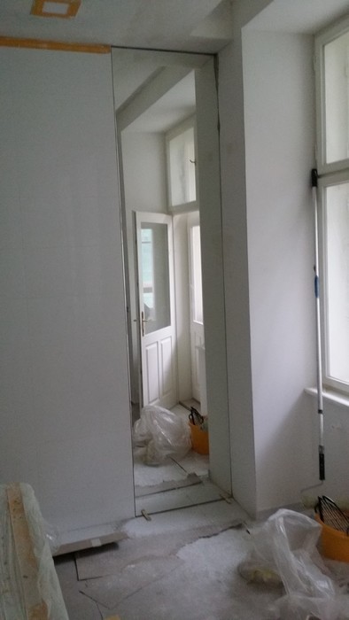 V případě nerovného povrchu zajistíme vhodný podklad a následně zrcadla nainstalujeme.